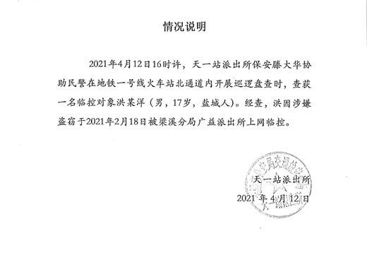 4月12日,公司派駐天一派出所保安隊(duì)員滕大華協(xié)助民警在地鐵一號(hào)線火車站北通道開展巡邏盤查時(shí),查獲一名臨控對(duì)象并移交公安機(jī)關(guān)作進(jìn)一步處理。公司保安隊(duì)員多次協(xié)助民警查獲臨控人員,為維護(hù)地鐵安保作出了積極貢獻(xiàn),受到了公安機(jī)關(guān)的高度肯定與贊揚(yáng)。