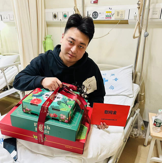 近日,受公司領(lǐng)導(dǎo)委托,第一分公司管理人員到醫(yī)院探望剛做完取鋼釘手術(shù)的職工。大家親切詢問了他的治療情況,勸慰其放松心情,祝愿早日康復(fù),并代表公司向他送上慰問品和慰問金,把公司領(lǐng)導(dǎo)和同事的關(guān)懷送到了他心中。