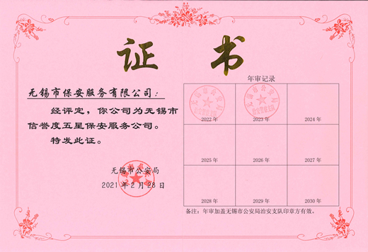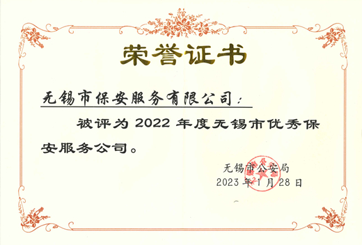 3月28日下午,在無(wú)錫市保安協(xié)會(huì)召開的2022年度“雙優(yōu)”表彰大會(huì)上,保安公司榮獲“2022年度優(yōu)秀保安服務(wù)公司”、蟬聯(lián)“五星級(jí)保安服務(wù)公司”稱號(hào),保安員黃皆迎、徐海東榮獲“2022年度無(wú)錫市優(yōu)秀保安員”榮譽(yù)稱號(hào)。