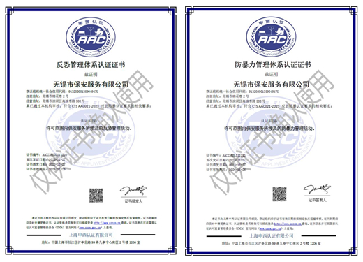 公司獲得反恐管理體系和防暴力管理體系認(rèn)證
