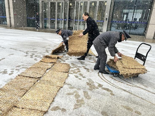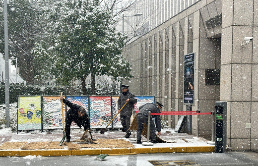 12月18日,無(wú)錫迎來(lái)了全市強(qiáng)降雪天氣,為錫城換上潔白盛裝,美麗的雪景背后是可能出現(xiàn)的道路結(jié)冰與積雪。為了保證警務(wù)中心大院的通行安全和正常秩序,防止因路面結(jié)冰對(duì)車(chē)輛通行造成影響,公司領(lǐng)導(dǎo)靠前指揮,迅速部署,全力組織駐警務(wù)中心保安中隊(duì)實(shí)施清雪除冰作業(yè)。隊(duì)員們?cè)诖笤褐鞲傻兰案鬟M(jìn)出口拋灑工業(yè)鹽,鋪上草墊,每小時(shí)進(jìn)行一次破冰除雪,確保車(chē)輛、行人安全通行。
