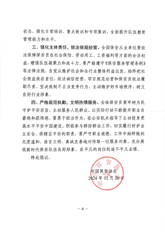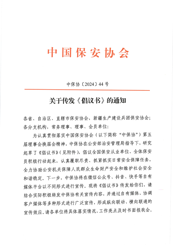 中國保安協(xié)會向全國保安從業(yè)單位、全體保安員發(fā)出倡議書
